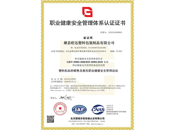 • 職業(yè)健康安全管理體系認(rèn)證證書